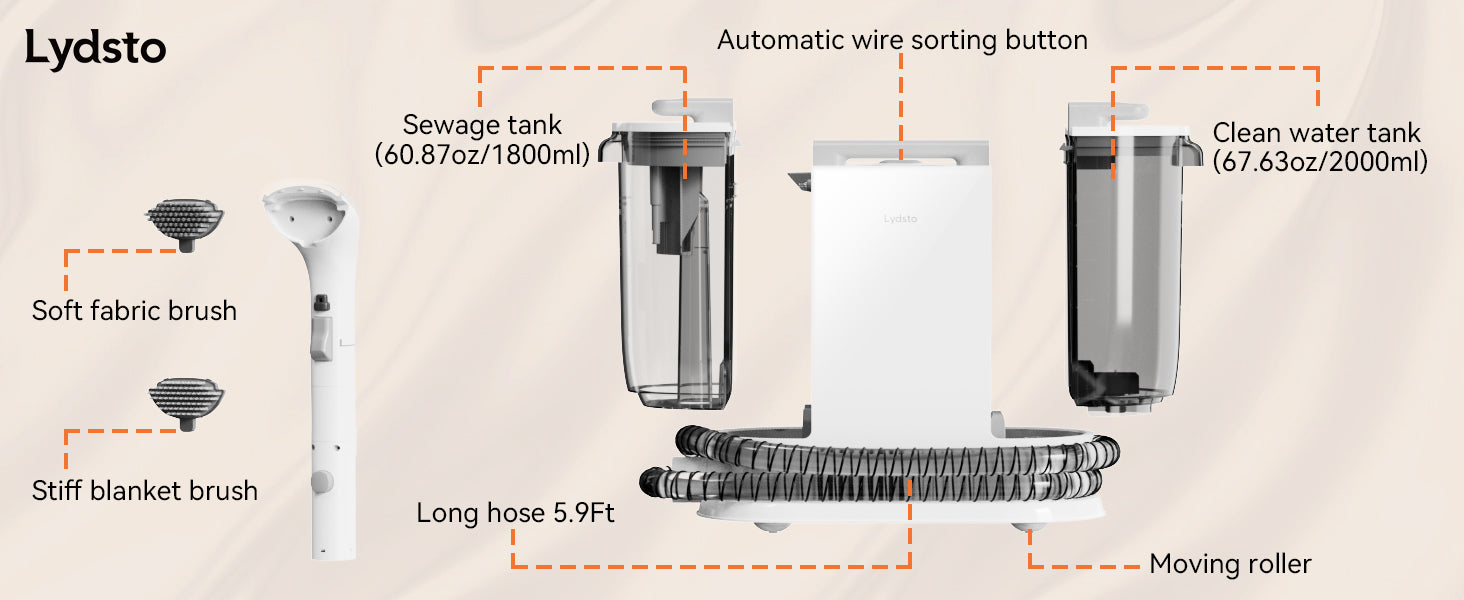 - 67.6 oz (2000ml) clean water tank and 60.8 oz (1800ml) dirty water tank