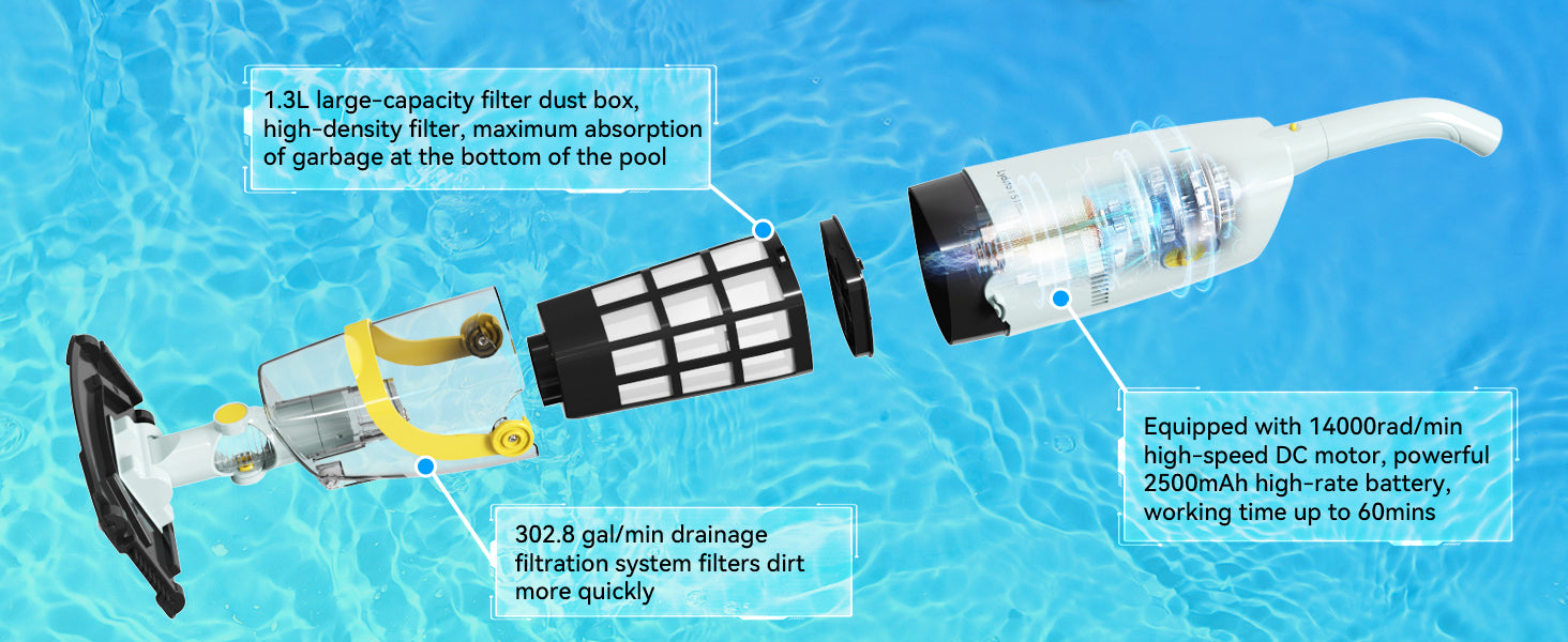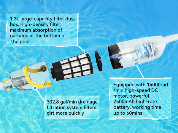 Comes with a 125μm fine filter that retains debris and dirt without leaking, effectively cleaning small pools/spas/hot tub vacuum.