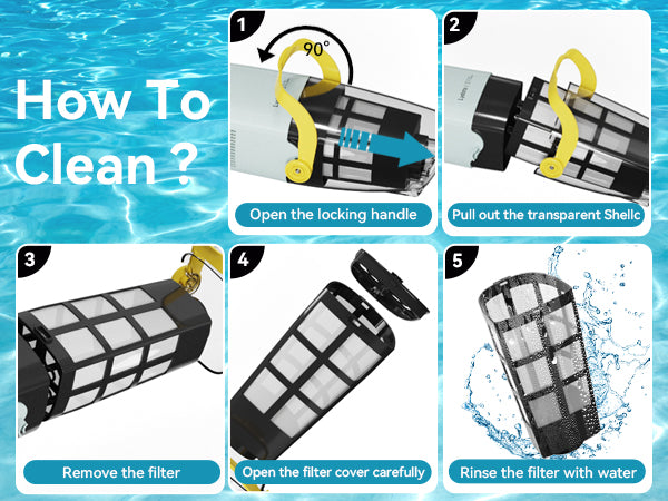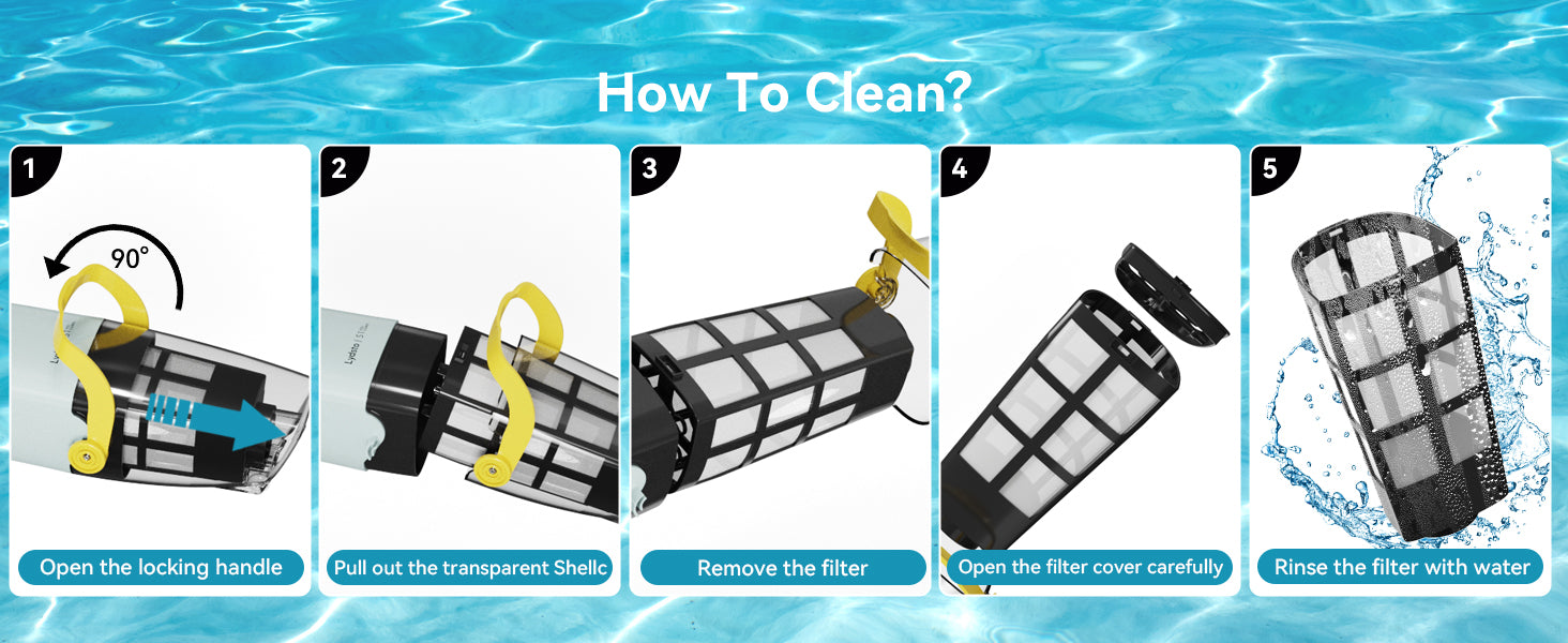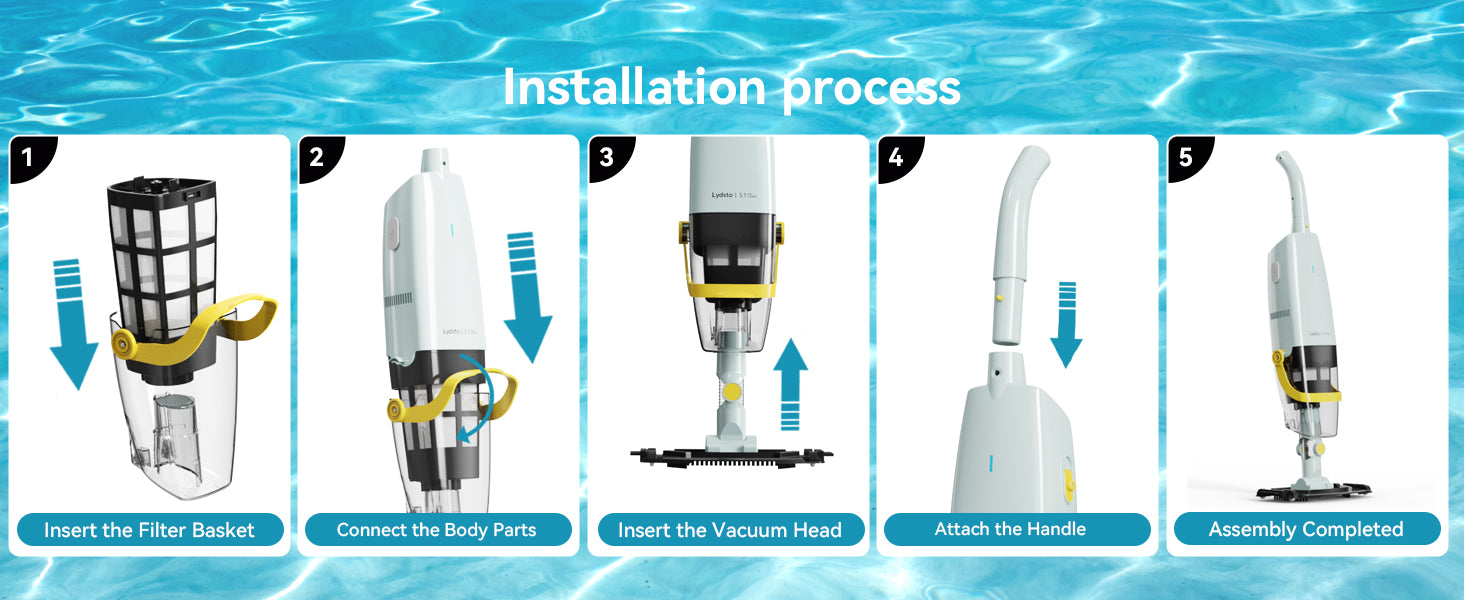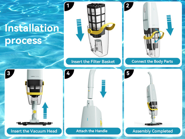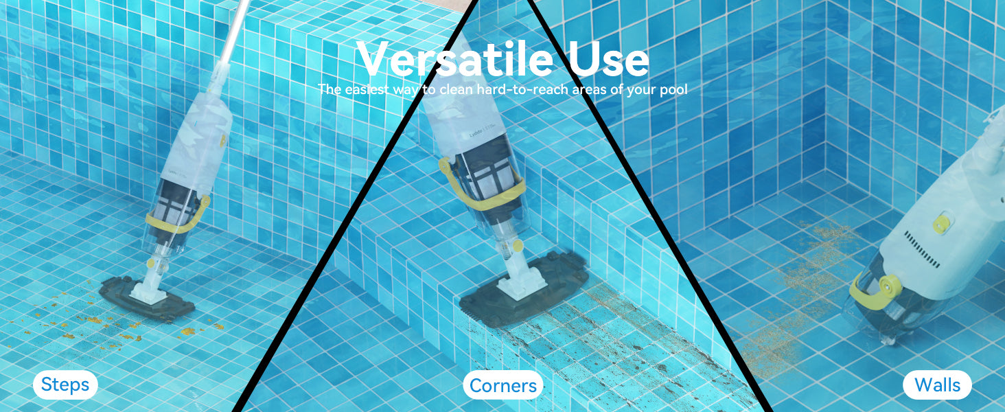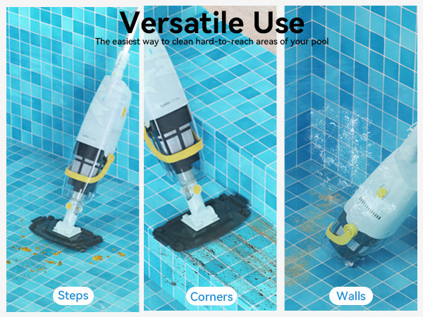 Push the switch operation. Simply attach the unit to the included pool pole, turn the unit on and you are ready to vacuum as you do on the floor.
