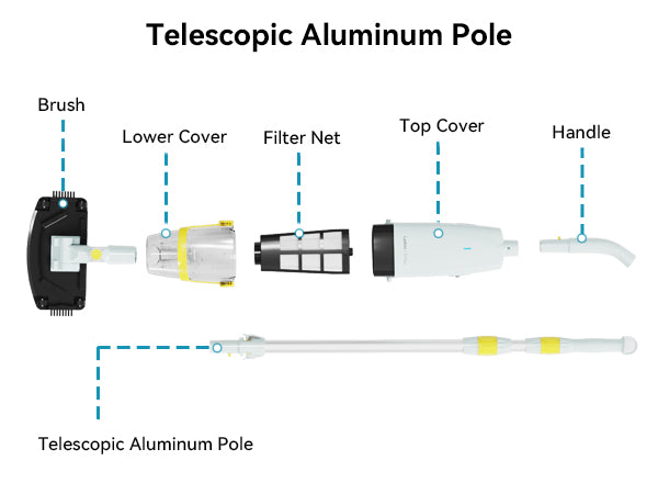 - For swimming pools, you can also connect to a suitable length standard pole (not included).