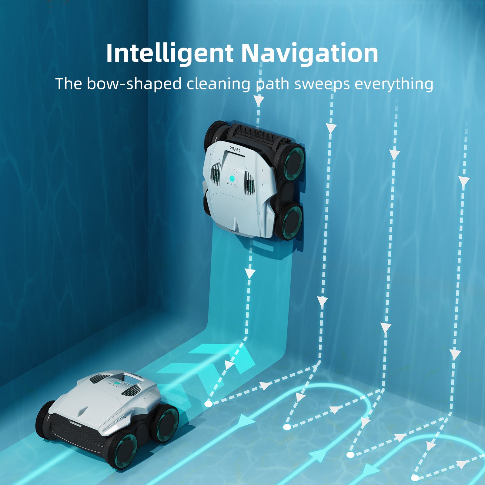 - Utilizing cutting- edge P-smart 2.0 algorithm, employs high-precision IMU sensor intelligence and ultrasonic technology to navigate your pool with precision.