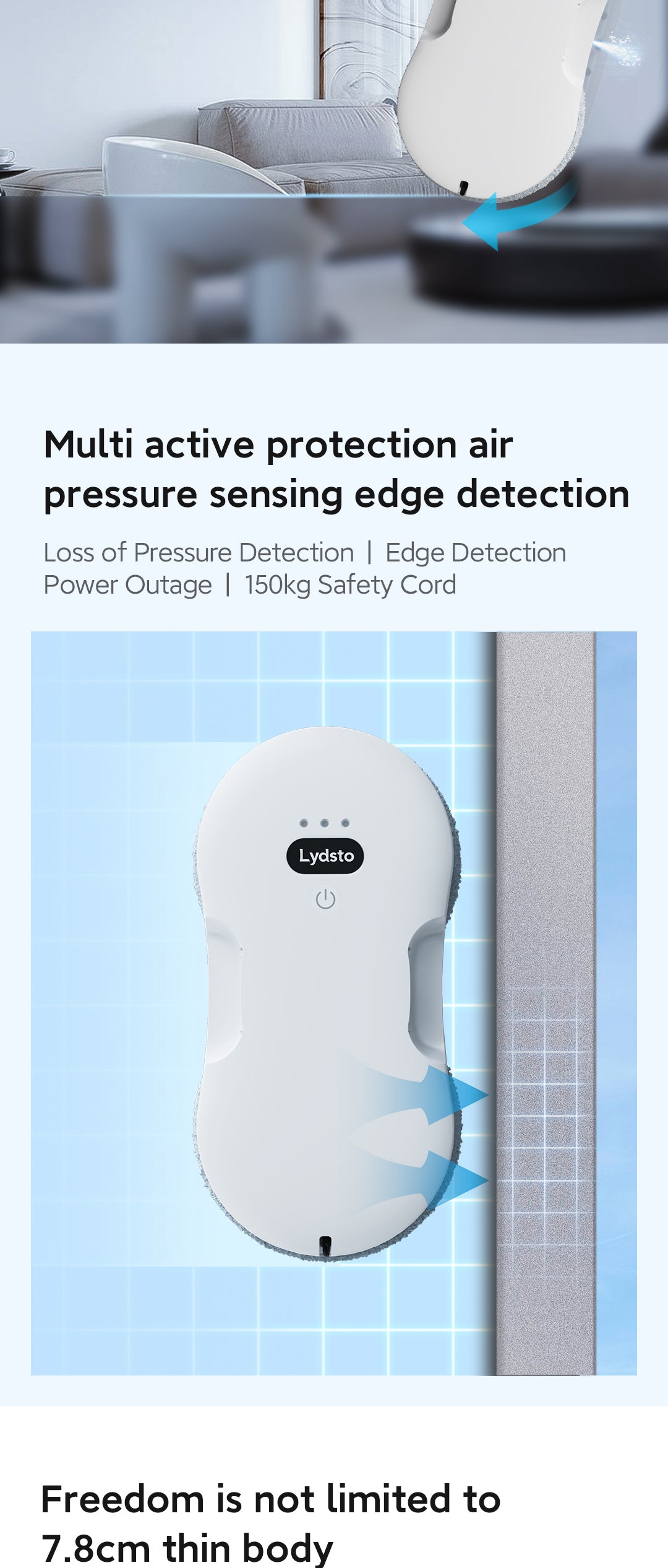 - 360° Edge Detection: Smart sensors ensure safe operation, detecting edges to prevent falls, even on frameless glass